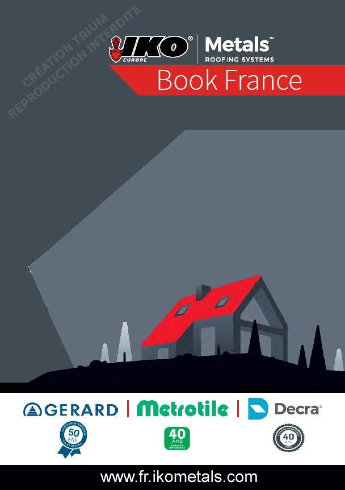 Le book France des tuiles et ardoises métalliques IKO Metals reprend les brochures des différents modèles de tuiles et d'ardoises, le catalogue produits, le guide de pose et des photos de projets d'inspiration.