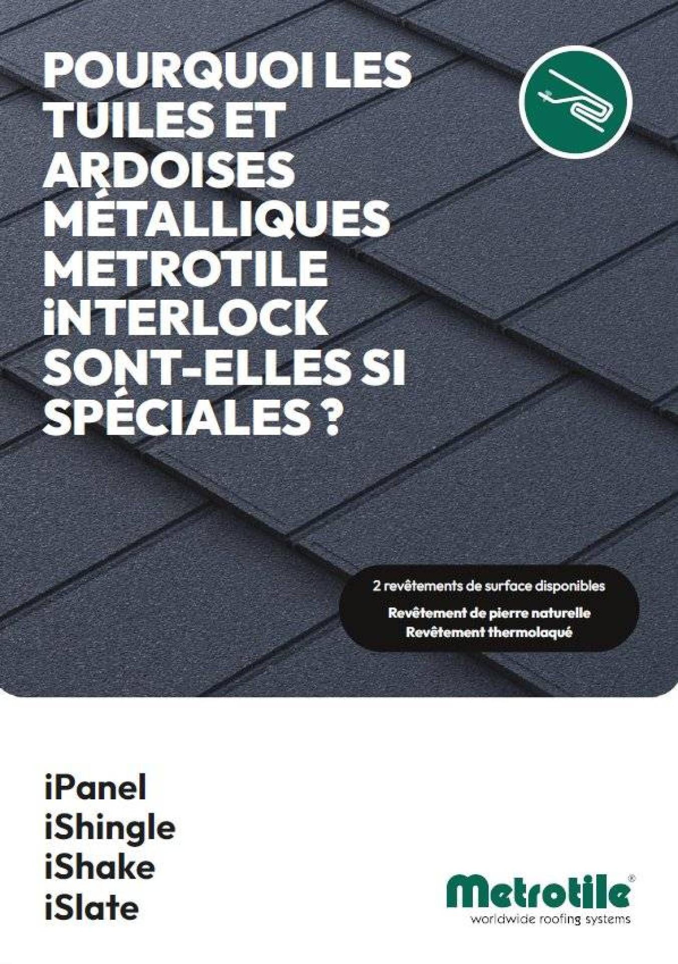 Téléchargez la brochure des tuiles et ardoises métalliques METROTILE® iNTERLOCK avec iPANEL, iSHAKE, iSLATE et iSHINGLE.