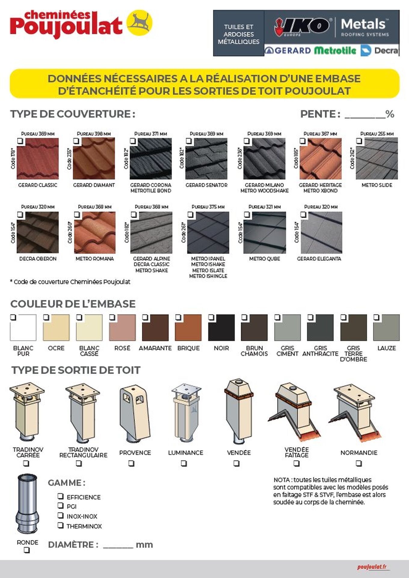 Les cheminées POUJOULAT fabrique sur mesure les embases de raccordement pour les tuiles et ardoises IKO Metals.