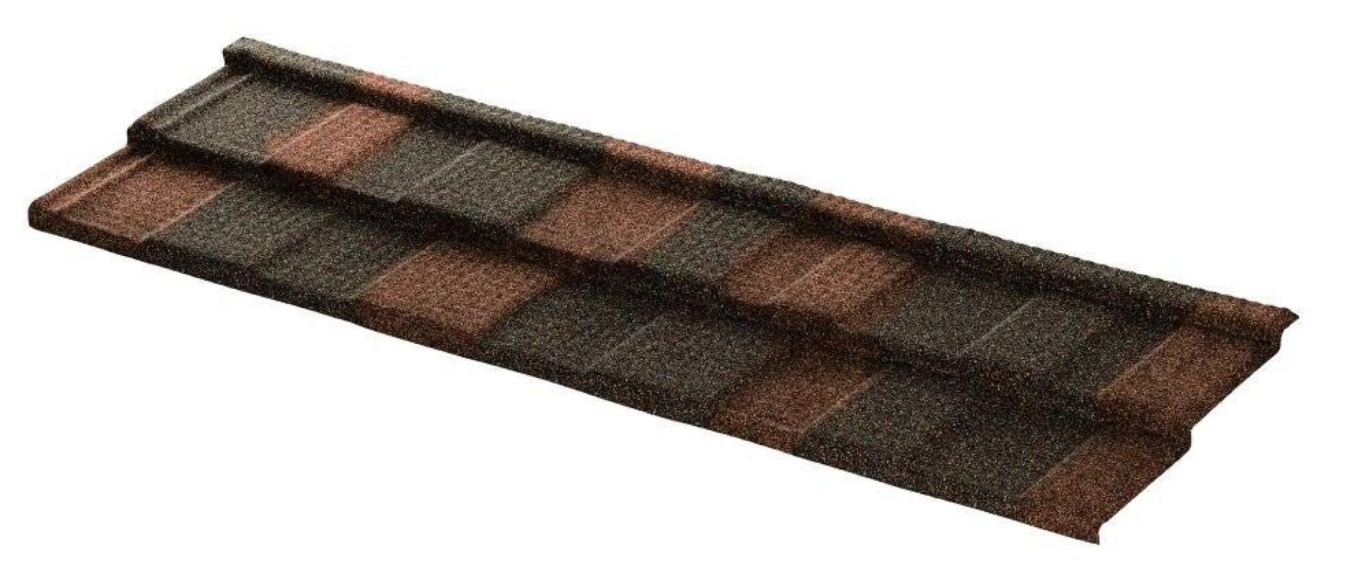 DECRA®, le relief est très prononcé avec un rang intermédiaire, elle a l'aspect des petites tuiles plates de pays sans avoir l'inconvénient du poids sur la structure de la charpente.