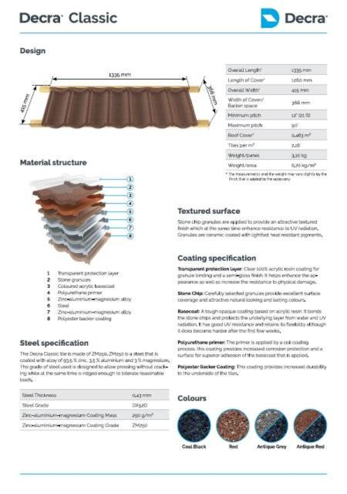 Fiche technique DECRA CLASSIC