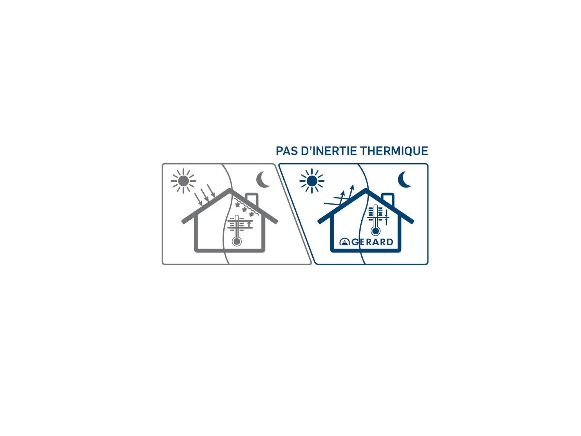 En été et en journée, les tuiles et ardoises métalliques GERARD®, METROTILE® et DECRA® comme toutes les tuiles, montent en température. Mais, le soir venu, avec la baisse de la température ambiante, les tuiles se refroidissent également car elles n'ont pas d'inertie thermique. Elles contribuent au confort d'été.